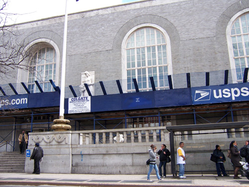 This prominent facility, located on the Grand Concourse was originally called the Bronx Central Annex, U.S. Post Office Department, was meant to serve as the Bronx headquarters of the New York Post Office. The need for this facility was long disputed even after the population of the Bronx swelled in the 1930s to over 1,500,000 (larger than many major U.S. cities) and despite the fact the federal government had specifically purchased property for it years before. With the New Deal initiatives of the Franklin D. Roosevelt administration, the building’s construction finally came to fruition.