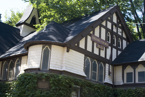 The impoverished neighborhoods of nineteenth-century New York City were familiar with “mission chapels,” offspring of well-to-do parish churches, which offered spiritual and material help to local residents. There have been lots of such mission chapels throughout the Bronx. But the last place we’d expect to find one is in affluent Riverdale. Yet beautiful Edgehill Church, today almost entirely hidden among the high-rises on Independence Avenue, was built in 1888 as a mission of the Riverdale Presbyterian congregation, whose own Renwick church building is about a mile to the north.