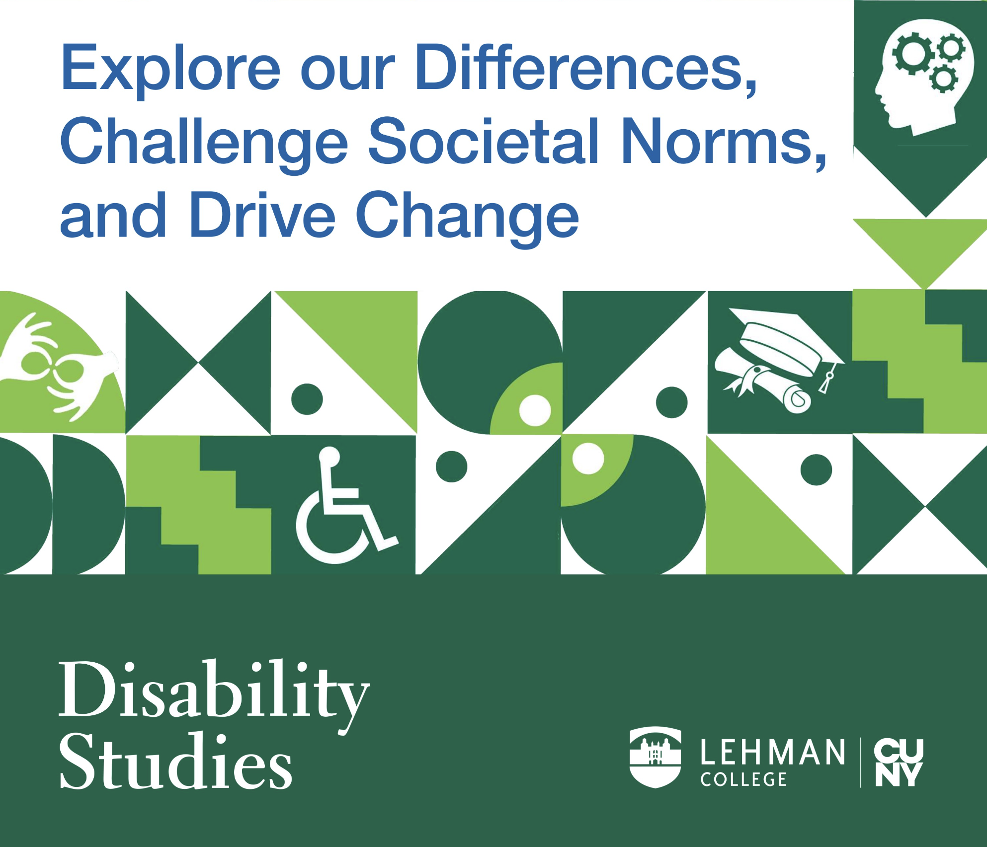 At Lehman, students have two kinds of advisors: (1) a general academic advisor who helps you with your overall degree and general education requirements, and (2) an advisor for your chosen major or minor. Disability Studies provides the second kind of advising: we advise students who are minors Disability Studies or wish to become minors in Disability Studies.