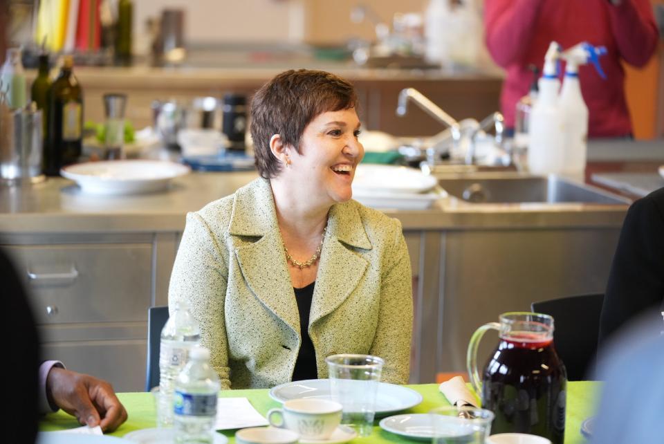Hensel was treated to an internationally-themed lunch prepared by students in Lehman's Dietetics, Foods, and Nutrition program. (Photo: Brian Hatton)