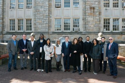 The group of Security Council members then convened for a guided tour of the Old Gym—where the Council first met on March 25, 1946, when the College was part of Hunter—that included a presentation on the history of the Security Council, led by the UN’s Chief of Guided Tours Rula Hinedi and Lehman Professor Emeritus Duane Tananbaum.