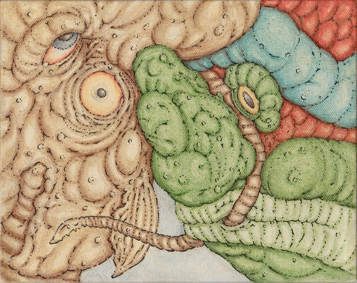 “These paintings present a side-by-side account of experiences both banal and mystical as seen through two minds.”
