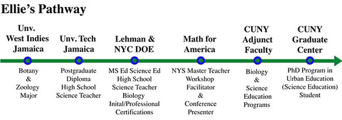 Ellie Williamson completed her M.S.Ed. in Science Education in 2009 at Lehman College. In the Fall of 2021, Ellie Williamson is joining Cohort 21(beginning fall 2021) in the Urban Education Ph.D. Program at The Graduate Center, CUNY. Ellie is a passionate secondary science educator. She has been teaching science for over 22 years. Currently, she teaches Living Environment and AP Biology at the Urban Assembly School of Design and Construction in Manhattan where she also leads and supports the science department. Ellie works collaboratively to mentor and support in-service and preservice teachers, and has also collaborated with research scholars. Having received her Master’s degree in Science Education at Lehman College, Ellie continued being active in the Lehman College community by serving as an adjunct lecturer working with science teachers under the guidance of Dr. Jack Henning and Dr. Wesley Pitts. Ellie is looking forward to continuing to work dynamically in the Urban Education Program with Dr. Pitts as his advisee. Her research interests are in the areas of science teacher education and professional trajectories and science learning in urban classrooms. Additionally, she participated as a presenter at Lehman College’s STEM Teacher Mini-Conference. Highlights of her career also include being a recipient of the Shell Science Educator Award and leading professional development in the Math for America community and the New York Master Teacher Program. Ellie is a recipient of the highly competitive Graduate Center Fellowship recognizing her academic and leadership achievements. Ellie is the author of A Jamaican-born Science Educator Reflects on Success Attainability which appears in the edited book A Paradise to Regain (2019) edited by Harushimana, Alfred and Davis (Myers Education Press).