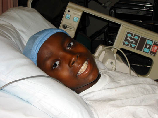 I love to play football and basketball, and plan to get a sports scholarship to Yale or Harvard when I'm older, or else I'll join the army. I have a lot of good friends, and I want to go back to school to see them, too. Do you like my do-rag? I'm the only one who gets to wear one at school because we have a pretty strict dress code, khaki pants and a nice shirt each day. I wear one because I don't have any hair...just for the time being. It came out when I was being treated for cancer. Here's what happened. Last year I discovered a lump in one of my testicles. At first I just figured it must be something all boys had, but soon I found out that it was a kind of cancer called rhabdomyosarcoma. When I learned about it, I was very sad, and my Mom and I cried. She helped me to understand, though, and she helps me go through all of the treatments, too, like radiation and chemotherapy. I don't think I get special attention because of my condition... Marquise does, though, I guess because he's only 3 and gets into everything. My brothers and sister wouldn't agree with me on that one...they think I get special privileges. For instance, when my stomach feels bad from the medicines, my Mom does my living room chores for me, and one of the kids will complain, "not fair...why don't you do my kitchen chores!". When