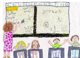 The room was big with lots of windows and lots of desks (the kind that open up), and an old fashion blackboard with everybody’s names written in script. The windows had little blinds in front of them, but you could still see outside if you looked hard, and outside, right across the street and behind some bushes, was the children’s hospital.