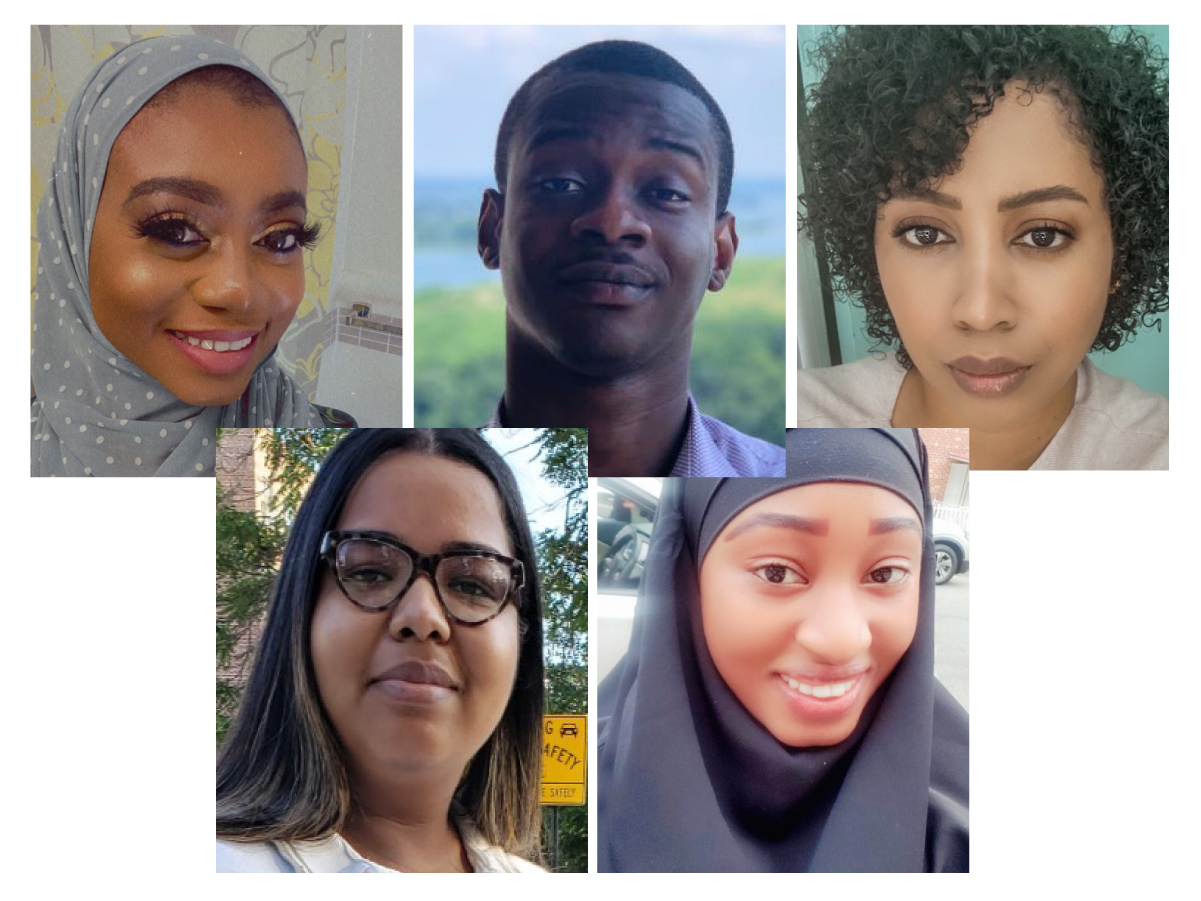 Clockwise from left: scholarship winners Iman Owusu, Samuel Boafo, Jhandal Sayers, Oumie Jaiteh, and Nadia Ramsingh