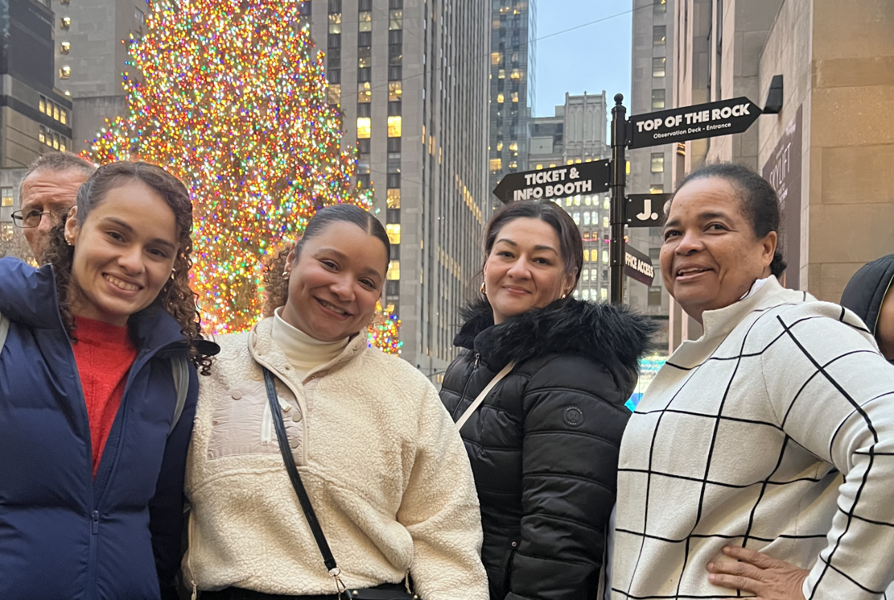 In front of the Rockefeller Center Christmas Tree after watching the Radio City Christmas Spectacular Starring the Rockettes.