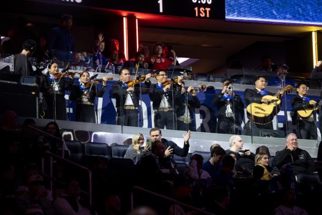 Miryam Juarez, second from left, leads members of Mariachi Perla Mexicana de NYC in their debut Madison Square Garden performance.