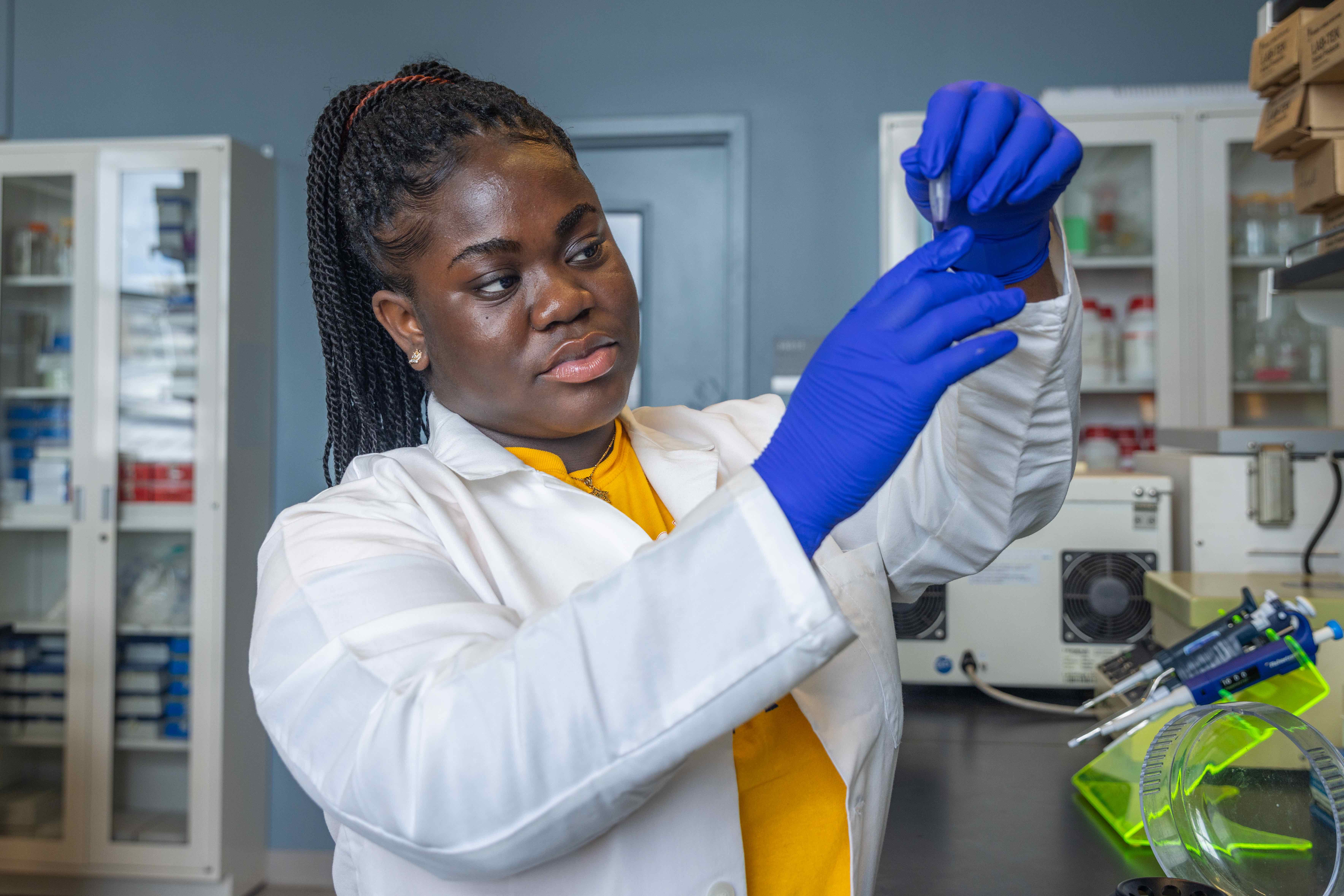 New alumna Simíra Smith exemplifies the tenacity and strength of Lehman's Class of 2025. Weathering housing and financial insecurity, a fire, and discouragement from others on the path to a college degree, she held fast to her dream and succeeded—with honors. With her diploma in biological sciences now in hand, Smith has her eyes set on a doctoral degree and a future in cancer research.