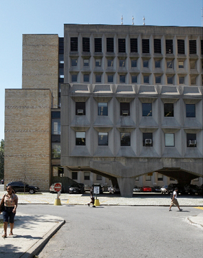 Breuer’s NYU University Heights complex was finished in 1964. He returned to the campus in 1967 to add another building, today’s Meister Hall, in what had become his new style of suave coffered concrete. By 1973 the school, beset with financial difficulties, was forced to sell its campus to the City, which has made it the home of The City University’s Bronx Community College.
