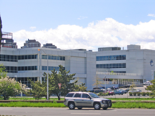 The partial demolition and wholesale conversion of the 1977 Bronx Development Center, the earliest important public work of the architect Richard Meier, regarded by many as a masterpiece of Modernism, is (to say the least) regrettable. Originally built for the New York State Department of Mental Hygiene as housing for 380 children with physical and mental disabilities, the BDC was allowed to drift into decay as the State shifted its approach away from institutionalization of the mentally handicapped. In 2001 it was sold at auction for a mere 3.7 million dollars to a developer who plans to triple the size of the original 330,000 square-foot facility alongside the Hutchinson River Parkway, providing space for offices and conference centers, and perhaps a hotel. The first stage of the expansion, the Hutchinson Metro Center, opened in 2003, with Mercy College among the tenants. Two towers are currently rising alongside it.