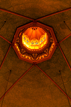 Today that same bell (“Old Edgar”) has been moved to a higher pinnacled belfry, which replaces Roderigue’s original steeple. In fact, much of the present church is made up of later additions to the 1845 structure, including the spectacular octagonal crossing, crowned with a copper version of the lantern of England’s Ely Cathedral. An important exception is the set of Sèvres stained-glass windows along the nave, a gift of France’s Louis-Napoleon.