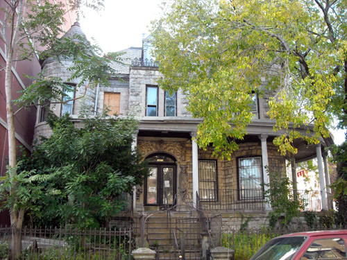 But the pattern of villages set in a countryside was soon overwhelmed. Real estate and building interests, hoping for high-density neighborhoods to grow as the new elevated lines moved northward, persuaded administrators to impose a rectangular grid on every acre of the North Side. Multiple dwellings were fitted into narrow lots to house Manhattanites less prosperous than the Shuttleworths, who flooded into the new borough. Single-family residences were elbowed out by row houses and the ubiquitous tenements, and later by apartment houses. It is with considerable surprise that today’s visitor comes upon the Anthony Avenue house, saved possibly by extravagant ornament, stubbornly holding down its street corner.