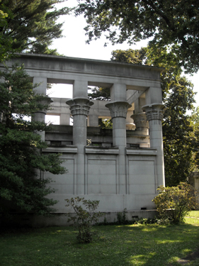 American millionaires were energetic individualists, but they seem to have been timidly conventional in the face of death (or their architects). Jay Gould and Collis P. Huntington are interred in fairly indistinguishable Ionic temples; William Ziegler and Joseph Paterno each rest in their own personal reproduction of the Thesion at Athens. Still, it’s worthwhile to sift through redundant Attic tombs in search of the work of the firm of McKim, Mead, and White. The classical, in its many versions, was their “house style.” Beyond archaeological knowledge, they had the confidence to experiment with the design code.
