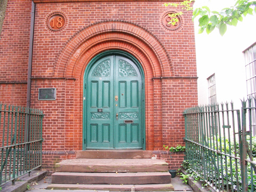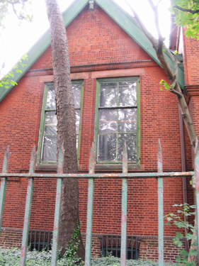 The executors of the late Peter Van Schaick, a wealthy tobacco merchant who had left $15,000 for the creation of a free reading room to be donated to the village of Westchester (the neighborhood of today’s Westchester Square,) hired the architect Frederick Clarke Withers in 1880. Among Withers’ surviving buildings is the polychromed and steepled Jefferson Market Courthouse in Greenwich Village, in 1885 voted one of America’s ten most beautiful contemporary structures. A touch of the courthouse’s Victorian picturesque style, appropriately tamed and scaled-down, appears again in Withers’ modest Bronx commission.