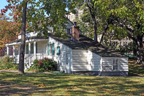 The unpretentious 1-1/2 story white frame farmhouse, at the north end of Poe Park, was the last home of American writer Edgar Allan Poe (1809-1849) who resided here from 1846 to 1849. One of the most celebrated 19th century literary figures, Poe is perhaps best remembered for his gothic tales, detective stories and poetry. It was in this very house that Poe wrote Annabel Lee, The Bells, Ulalune, and Eureka. This simple frame structure is also thought to have inspired Poe’s short story Landor’s Cottage. Poe moved into this house, then in the village of Fordham, with his ailing wife Virginia and mother-in-law, Maria Clemm. He hoped that the benefit of country air would cure his wife’s tuberculosis, but sadly she died in the house.