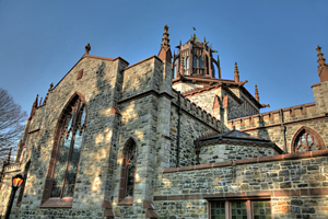 Webster Avenue and 233 Street or Jerome Avenue at Bainbridge Avenue Belmont Chapel (Whitewood plot), 1913, Richard Howland Hunt; Goelet Mausoleum (Oak Hill plot), Russell Mausoleum (Highland plot), Osborn Mausoleum (Brookside plot), Taylor Mausoleum (Walnut plot), 1900-1902, McKim, Mead, and White; Straus Mausoleum (Mysotis plot), 1913, James Gamble Rogers Photograph: David Bady |