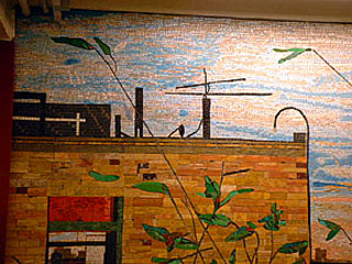 The viewer is invited to take a glimpse of the New York City of Hampton's childhood. Based on an actual rooftop vantage-point, one can see the vibrant community with laundry lines blowing in the wind, fire escapes with potted plants, and a distant cityscape with a blue sky in the background.