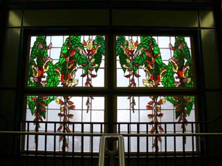 Visiting the New York Botanical Garden has been a way for artist, Skowmon Hastanan to revisit Bangkok, the home she left in 1973. Here, looking at flowers and fruits, she recalls their Thai names and imagines herself back home in her old garden in Bangkok. This is the inspiration for the glass windscreens at the 233rd Street Station. They depict vibrant images of fish, flowers, and greenery, providing commuters with a colorful and contemplative scene.