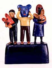 The sculptures also serve as location markers for classrooms within the school. They depict small groups of children, adults and animals in various situations with each suggesting small parts of a narrative. One sculpture depicts a bear reading to a little girl sitting on its lap; while another shows a boy reading to a lion. In still another children play with animal masks. More familiar scenes are depicted by other sculptural groups: a mother and child, a father with his son, and sisters and brothers. Nussbaum's whimsical works invite the students to cross the bridge between fantasy and reality.