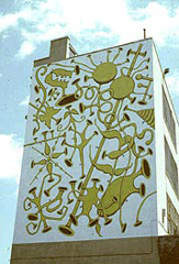 mural on masonry wall 660" x 432" Cosponsored by: Public Art Fund, Inc. and the Port Authority of New York & New Jersey in cooperation with C.E.S. 4 and the Board of Education |