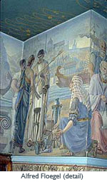 In the third floor corridor outside the library there are two WPA sponsored murals by Alfred Floegel (born in Germany in 1894) with Fosden Ransom as collaborator and Burgoyne Diller, assistant technical director. The History of the World represents various stages in the progress of civilization in a variety of countries. Constellations portrays the constellations and zodiac signs (1934).